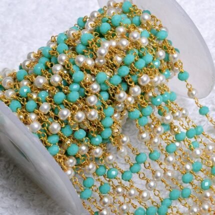 Turquoise with Pearl Rosary Chain