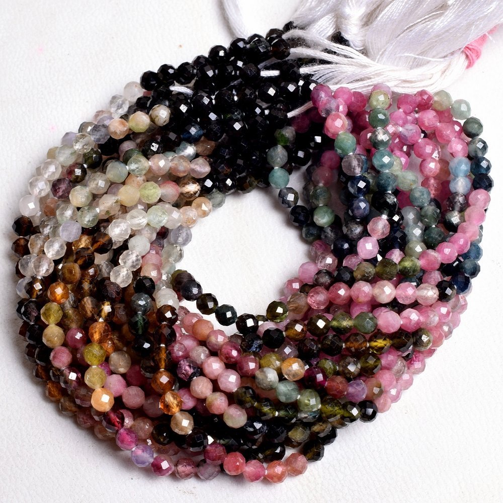 Multi Tourmaline Faceted Beads Gemstone 2,3mm Micro Faceted Round Beads, Multi Tourmaline Beads , Semi-Precious Gemstone Loose Beads, 12.5 Inch, Multi Tourmaline Faceted