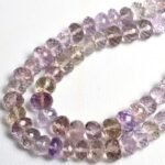 Natural Ametrine Faceted Rondelle Beads — Ametrine, a rare blend of amethyst and citrine, is an extremely rare gem. This happens when amethyst and citrine appear in one dolce. Ametrine is usually purple and yellow or orange in color. The areas of the two colors in the stone are so different that Ametrine does not match the others.