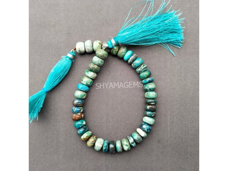 Chrysocolla crystal enhances the workplace and protects computers and mobile phones, so keep it on your desk. To clean the chrysocolla gems, place them under running water. A fountain or stream is ideal, but a faucet is sufficient. Chrysocolla can be a little delicate, so don’t do anything too bad or harmful. By maintaining this theme, Chrysocolla has the feminine energy to honor the Greek goddess Sophia, to promote wisdom, tranquility, and upbringing. Chrysocolla stimulates creativity, inner balance and self-awareness. Natural Chrysocolla smooth rondelle gemstone can be used when angry, guilty, or guilty. It gently promotes awareness and understanding of this process, allows it, and creates an energy of love and joy. Chrysocolla is a powerful stone that aligns all chakras with God. Chrysocolla is a semi-precious stone.