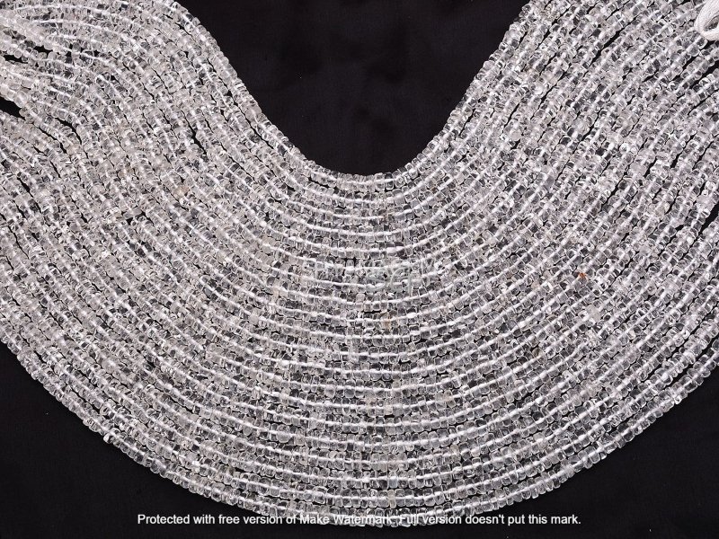 The name of quartz comes from the Greek word crystallos, or “ice”. The ancient Greeks worshiped clear quartz as constantly frozen ice made by the gods. On the other hand, other ancient civilizations had their own legends about transparent crystals. Natural Colorlessrock Crystal Quartz Smooth Heishi is classified as a semi-precious stone.