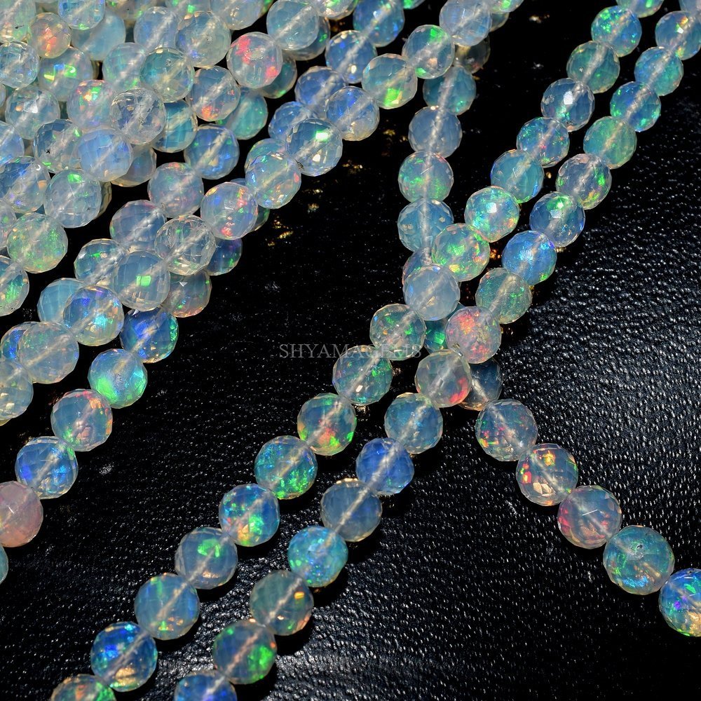 Natural Ethiopian Opal Faceted Round Beads — Discovered in the headwaters of Ethiopia in 2008, this opal helps illuminate the activities and positive emotions of the person wearing it. Promotes real nature and good character and helps the wearer to maximize their potential. It is known for its karmic superiority because it helps the person wearing it remember that whatever it sends will eventually return to it. Despite its porosity, it has proven to be very stable. It also displays a variety of colors ranging from fluorescent red to orange, as well as green to blue, white to yellow, and brown to fire. It also works together with colors like turquoise and indigo to create an eye-catching pattern that makes this Ethiopian Opal unique. This gemstone evokes passion, hope, virtue, purity, joy, love and happiness throughout the life of the person who wears it. This stone is ideal for curbing the vitality, calm, calming power and complexity of the water. This calming crystal protects the wearer from negativity and is often viewed as ancient gravel. Karma burns the past and opens the way to rebirth. It is traditionally believed to contain a soul hologram that also allows the user to access their past, present, and future.