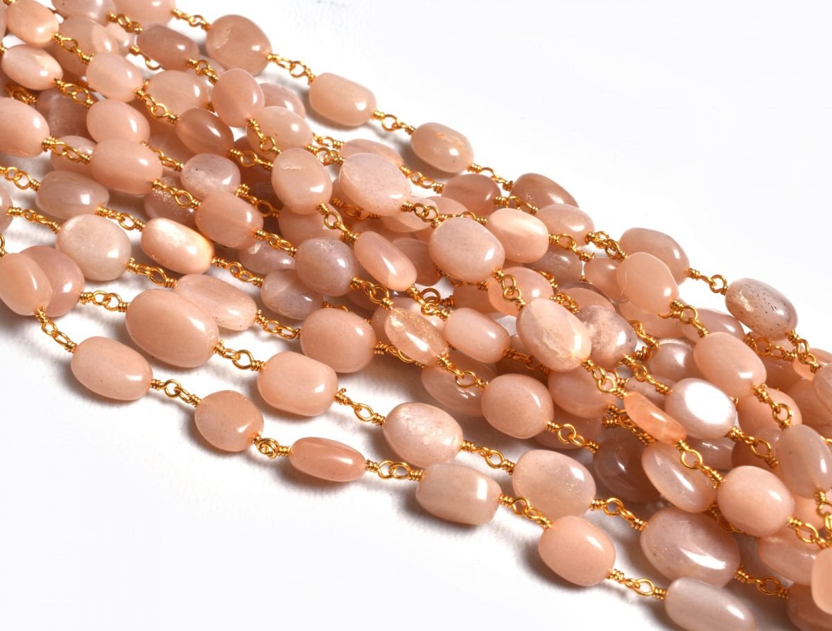 Natural Peach Moonstone Smooth Oval Rosary Chain