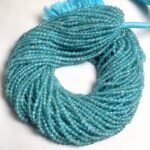 Sky Apatite Faceted Beads — Apatite was named in 1786 by the German geologist Abraham Gottlob Werner. Apatite gemstones can be green, blue, purple, violet, pink, yellow, colorless, and brown. From neon blue to apatite or blue-green, Madagascar is one of the rarest and most popular colors. Green apatite is also known as stone asparagus, and the green apatite first discovered in Arendal, Norway is called morocite. Apatite is a special treasure when cut properly, but too soft for most jewelry. Apatite defines 5 reference minerals on the Mohs scale of hardness.